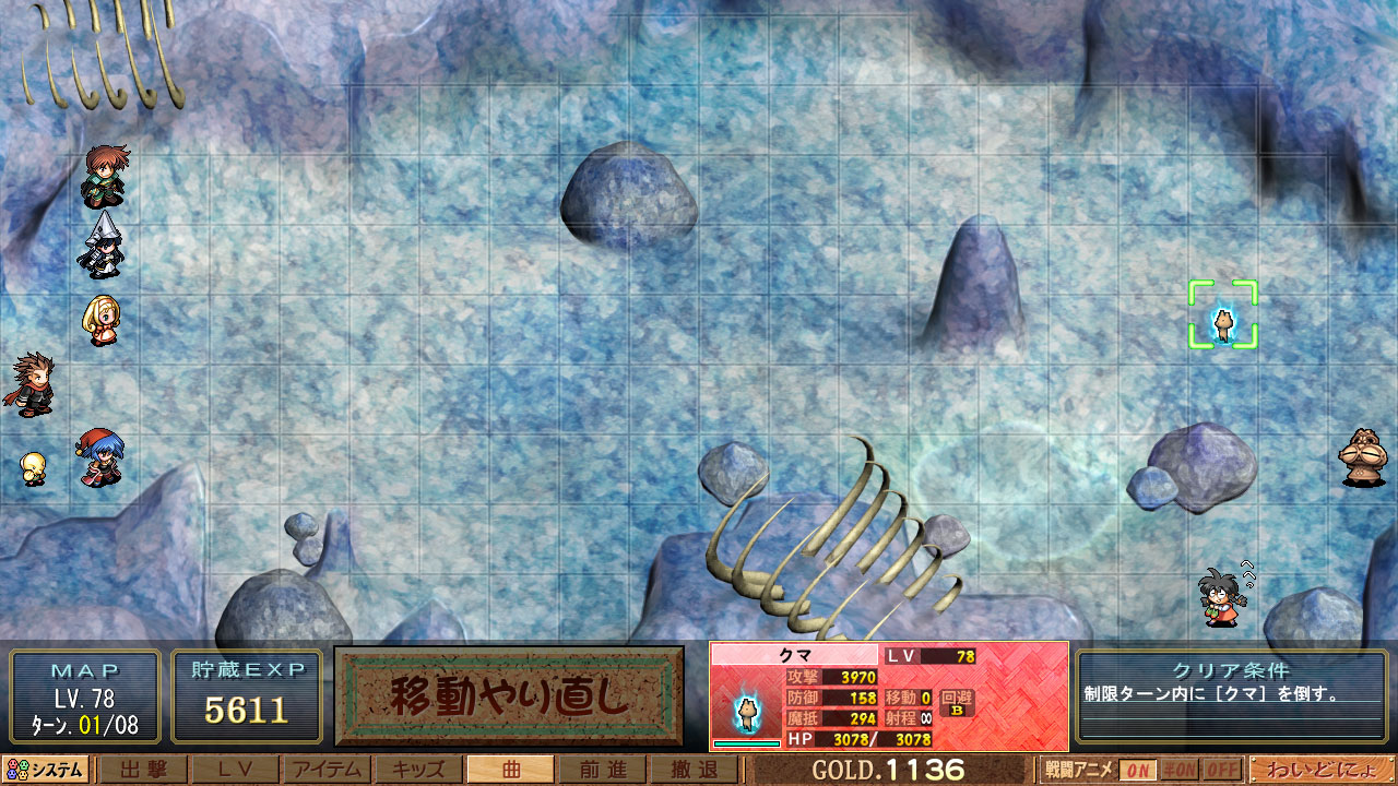 全員に1ターン目の攻撃に耐えるだけの耐久力必須 まぁ適度にキャラレベル上がってればHPだけで耐えられるようだけど。