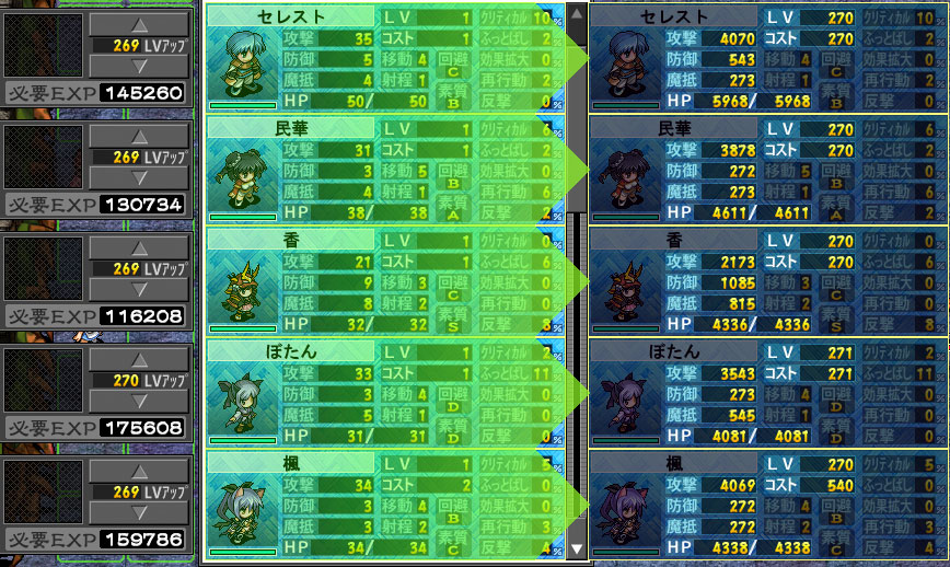 まぁ個人的なメモだけどね。キャラのステ増加量の参考に。(´・ω・`)